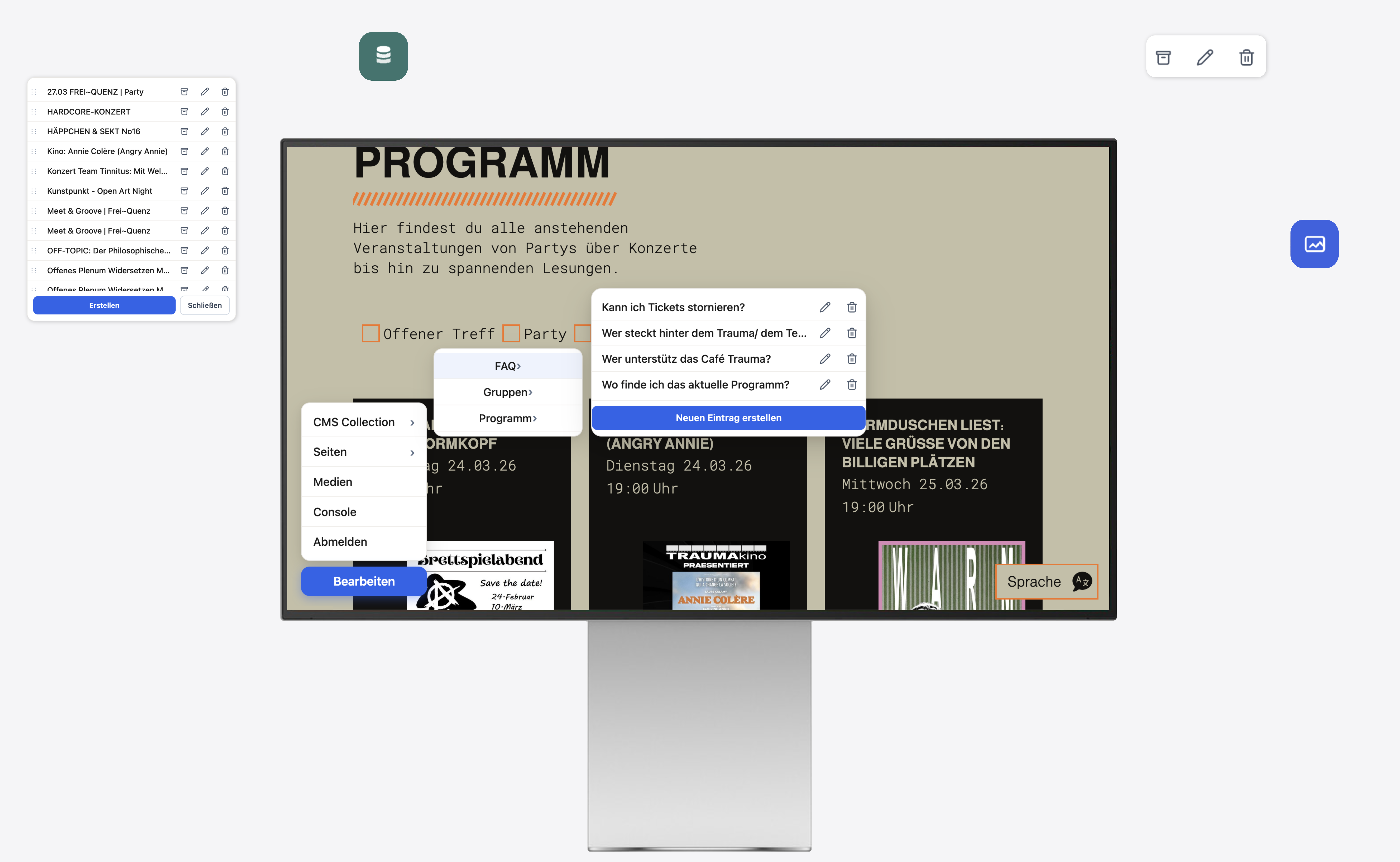 Inhalte entwickeln sich – und dein System sollte das unterstützen. Mit unseren CMS Collections erstellst und verwaltest du Inhalte zentral in einer strukturierten Datenbank. Du kannst Einträge hinzufügen, bearbeiten, archivieren oder für später planen – flexibel und jederzeit. Diese Inhalte werden dynamisch auf deiner Website angezeigt und passen sich automatisch an, sobald du Änderungen vornimmst. Bilder und Medien werden dabei sicher in der Cloud gespeichert und lassen sich einfach verwalten und wiederverwenden. So entsteht ein System, das dir nicht nur Arbeit abnimmt, sondern dir echte Kontrolle über deine Inhalte gibt.